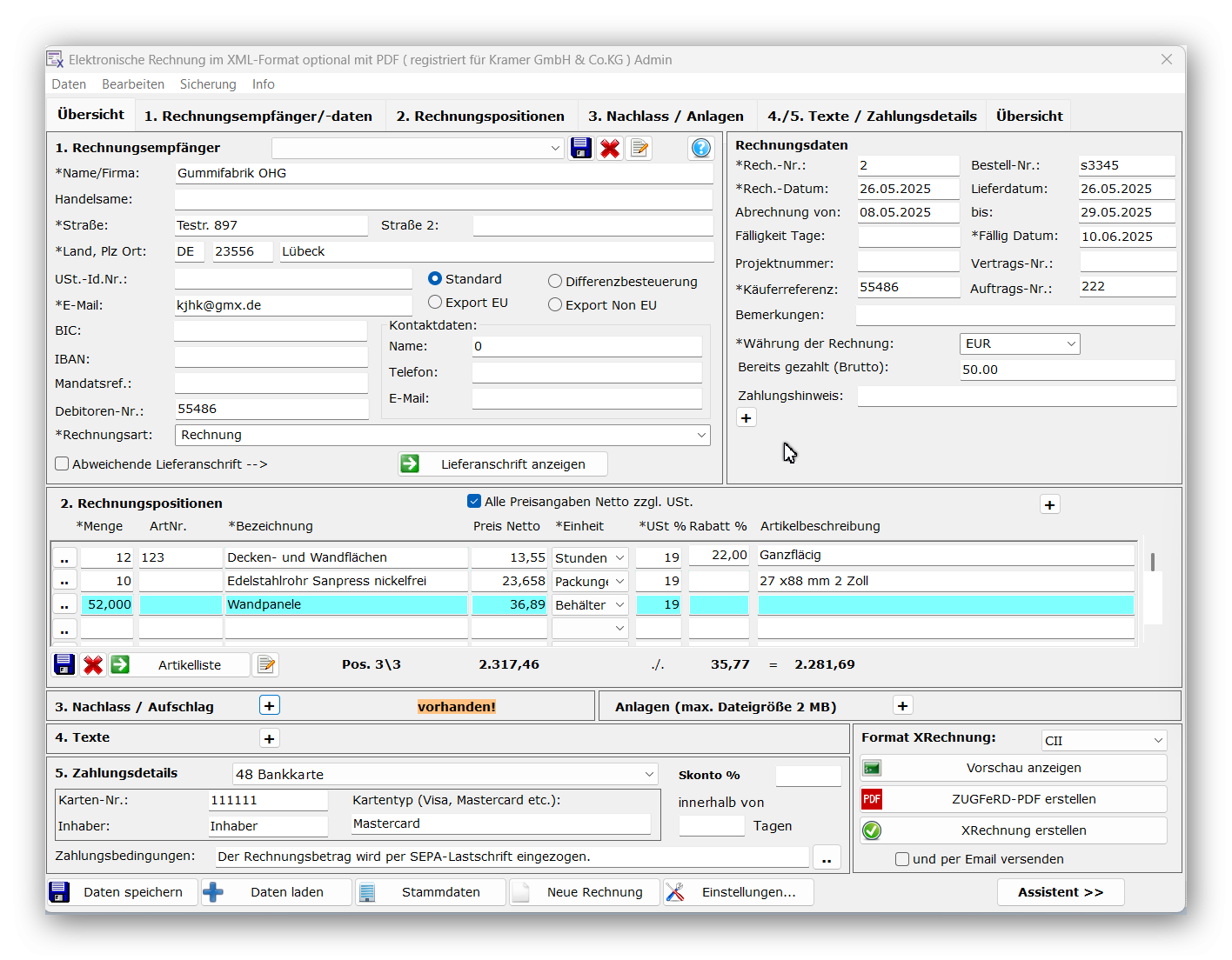 Erstellen von ZUGFeRD-PDF/Factur-X Rechnungen